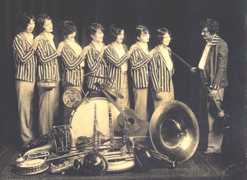 they won a "battle of music" against all their male competitors. In the winter the band played for vaudeville theaters on the Orpheum circuit--the cream of the theater chains.